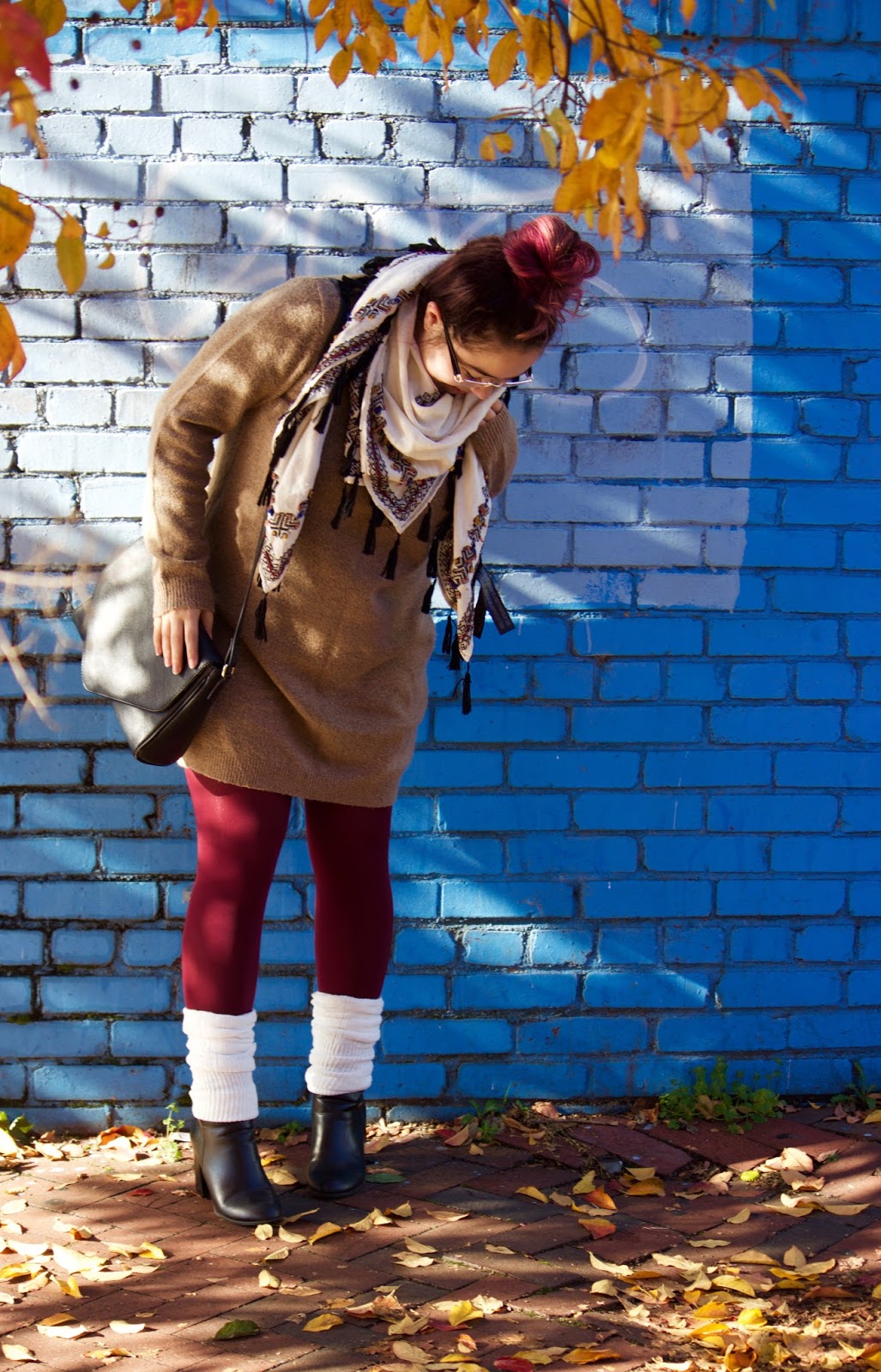 On Me: Dress & Bag: Forever21// Tights: Nordstrom Rack// Shoes: Goodwill// Scarf: Zara